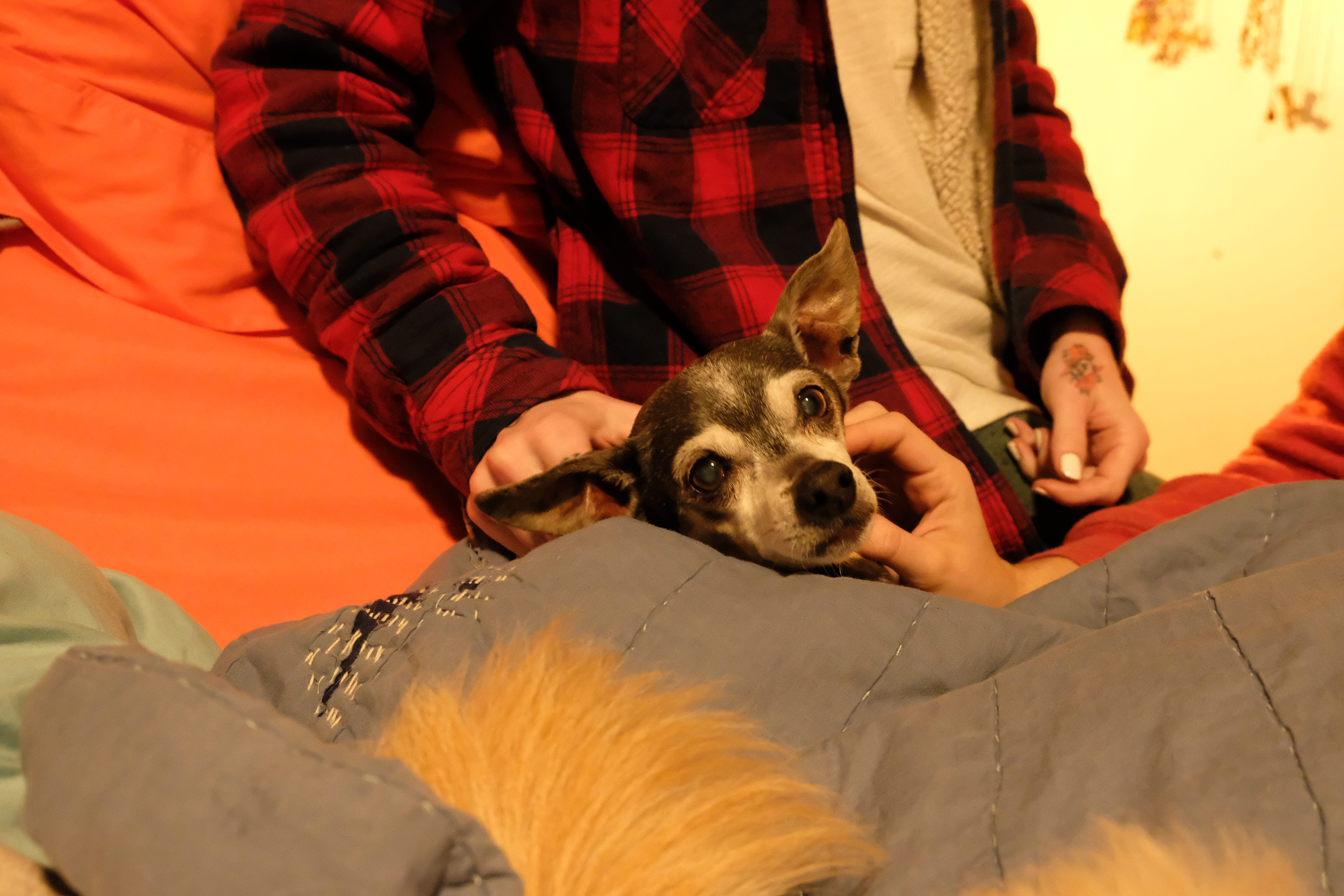 after roland, after vix, i needed a place to put my love. we had sweet bashi, our oakland street dog, addicted to belly rubs, still doesn’t know how to play catch, but one dog has never been enough. against our better judgement, we picked up a puppy from a place we shouldn’t have, a tiny chihuahua who slept against the crook of my neck on the long drive home, but.