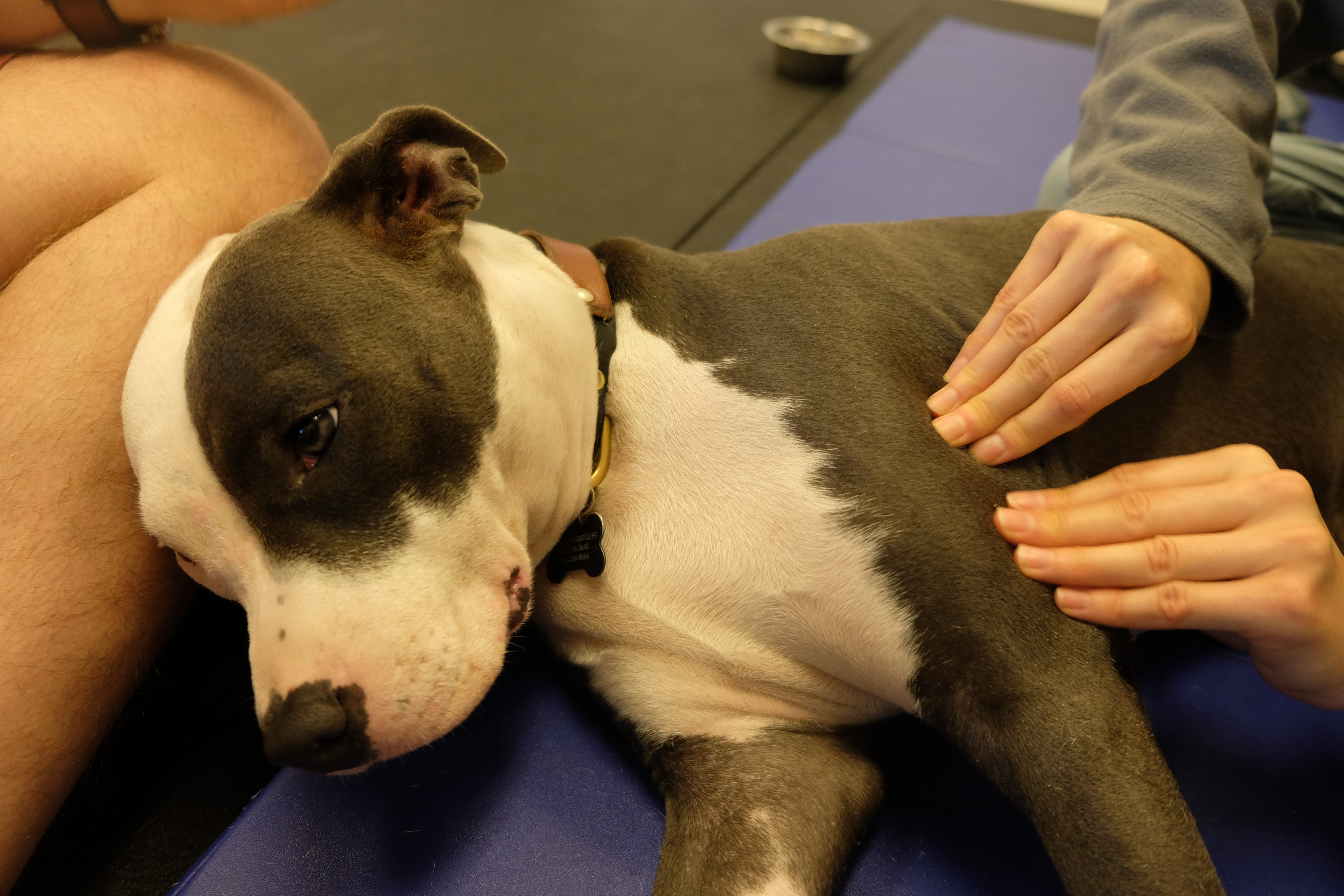 we took her to physical therapy, let a vet tech zap her incisions with a laser to invite healing, helped her balance as she learned again how to walk in a body that had betrayed her over and over again. some days she woke up with her back bent and aching from the effort of ambulating the way she had to, but most days she tore ass around corners chasing bash and the cats and wolfed down her dog food with the hearty joy only pitbulls can muster and curled against derek’s chest on the couch as he wound down for the night, their hearts beating in synchronicity.