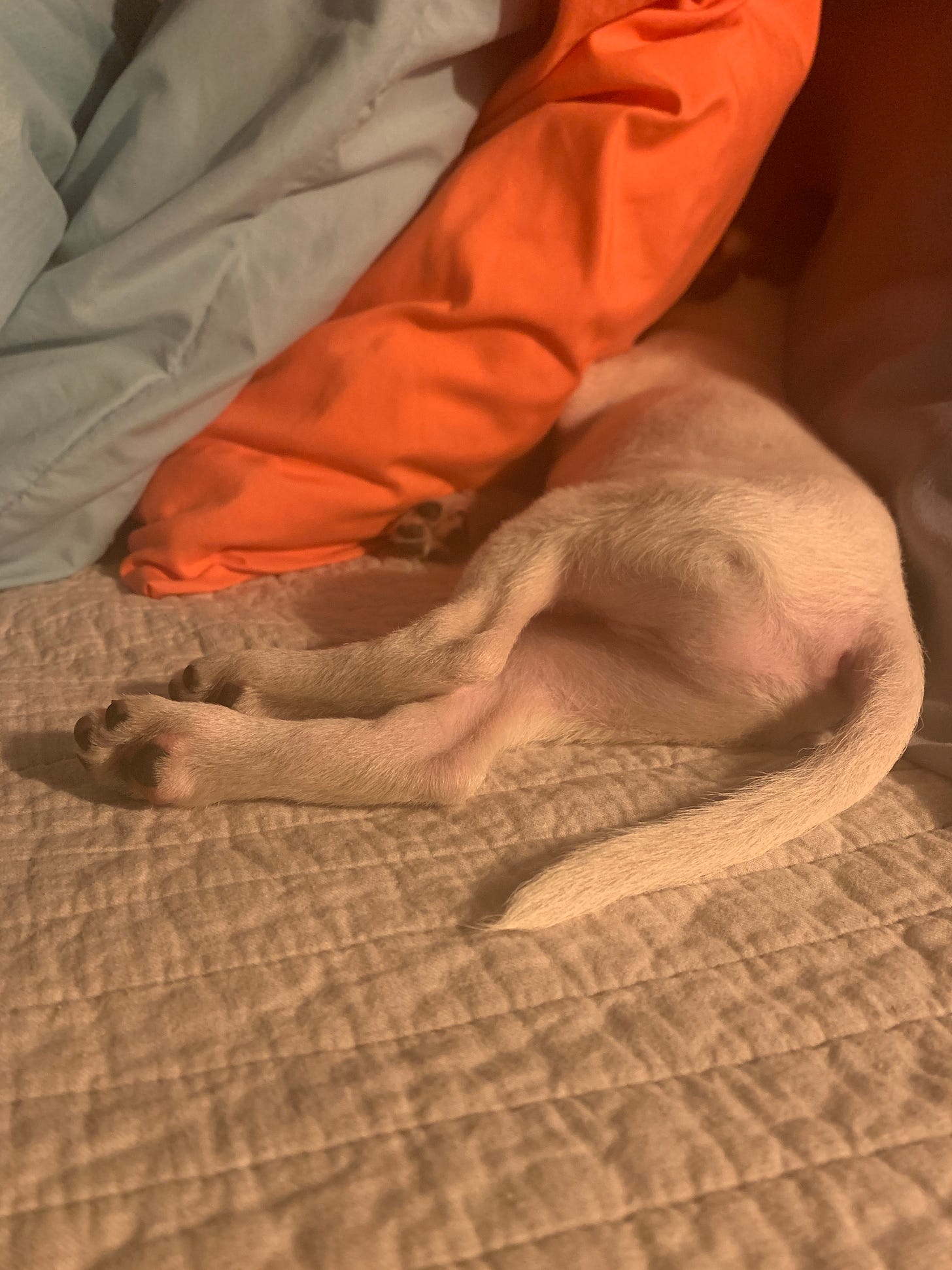 i’m the complete opposite. i fling myself headfirst, arms wide, into anything that will make me feel something other than the numb sting of grief. i need to feel more than that aching pull, the desperate yearning to undo what cannot be fixed after it’s been torn asunder. i need a place to put my love, a somewhere or a something or a someone, because there are so very many furry someones out there who need some of that extra love i’ve got, spilling over the sides of the moat around my heart, splashing and soaking. it took a little while (every day scrolling through pages of dogs, every age, size, breed, all needing a place to call home) until i got a text message from my mom with a picture of a puppy with no home who i knew was actually mine—i just had to convince my husband.